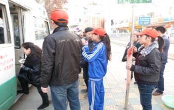 当日下午五点,师大体院员工会成员五人一组,分别在师大周围的几个公交车站点设置了“学雷锋、创文明”的活动现场,员工会的成员们在站牌处帮助维持秩序,帮助监督乘客们依次排队候车,在上车时,看到老人与小孩,排在前面的乘客纷纷让行,让其有座位可坐,这样不仅带动其他的乘客,也形成了一种良好的社会风气,同学们主动搀扶老幼病残者上车,大家这样的举动纷纷受到市民的好评与称赞。