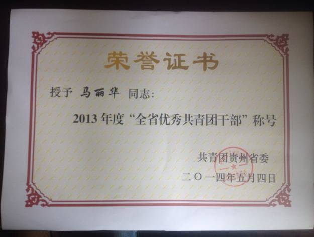 年度“全省优秀共青团干部”称号。