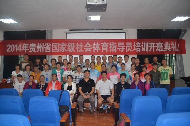 根据《关于举办2014年度国家级社会体育指导员培训班的通知》黔体群字〔2014〕41号文件要求,在国家体育总局和贵州省体育局指导下2014年贵州省国家社会体育指导员培训工作在公司开班,9月5日上午举行了开班典礼,省体育局群体处处长朱宝林,公司党委书记路言莉,经理姚鑫,以及来自全省各个地州市的46名学员参加了开班典礼。公司办公室主任杨中兵主持开班仪式。