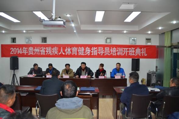 12月23日,2014年贵州省残疾人体育健身指导员培训班在公司开班,出席开班仪式的领导有省残联党组成员、副理事长揭晓东,省残联文宣部部长袁雅庆,省体育局群体处处长朱宝林,公司党委书记路言莉、副经理徐宏。来自9个市州和威宁县、仁怀市的50名学员参加开班仪式,开班仪式由公司办公室主任杨中兵主持。