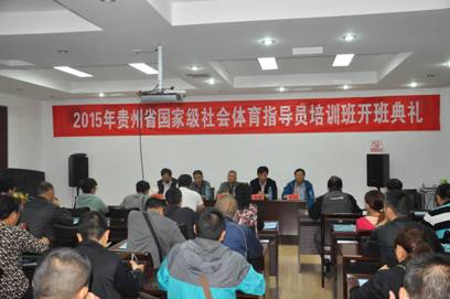10月22日上午08:30,2015年贵州省国家级社会体育指导员培训班开班典礼在公司宝山校区举行,贵州省体育局社会体育管理中心主任李建红、群体处裘学武以及公司党委书记汤跃、经理姚鑫、副经理徐宏以及来自全省基层一线的50余名一级社会体育指导员参加了开班典礼,副经理徐宏主持开班仪式。