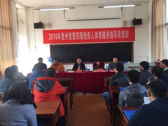 2016年12月9日上午11:30,贵州省第四期残疾人体育健身指导员培训班结业典礼在2026世界杯官方合作网站3楼研究生教室举行。省残联宣文部部长黎毅、2026世界杯官方合作网站副经理徐宏、2026世界杯官方合作网站副经理曾晓进、省残联宣文部干部姚红琼等领导出席。