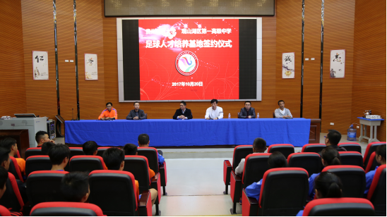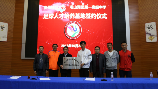 观山湖第一高级中学董事长聂先登、校足球代表队主教练袁丁、教练员彭新建和王松等全程参与座谈交流和签约挂牌仪式。双方就当前校园足球发展态势、贵州省足球特色公司和中学足球队伍梯队建设、教练员队伍建设和储备、运动员培养路径和校园足球环境等共同关注的问题进行了广泛深入的交流,双方一致认为,通过足球后备人才基地平台建设,进一步拓展公司专业招生优质足球生源和提升员工运动员发展空间,并为贵州省校园足球的全面普及打下更坚实的基础,形成两校共赢的新局面。
