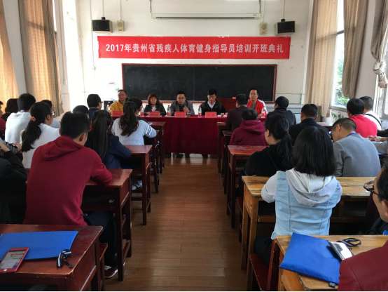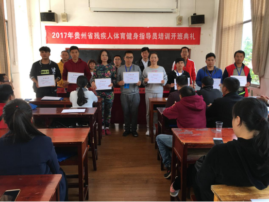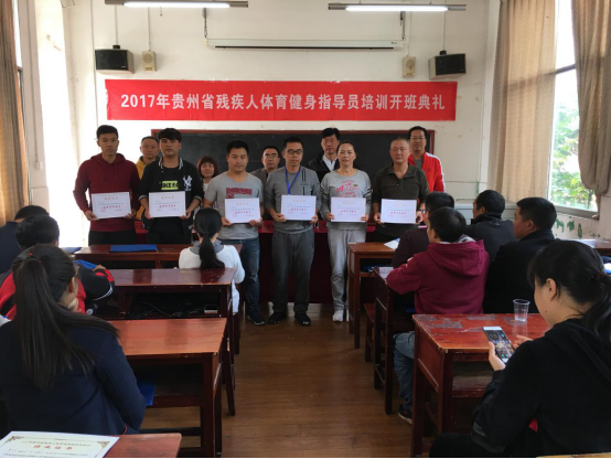 11月10日上午12:00,贵州省第五期残疾人体育健身指导员培训班结业典礼在2026世界杯官方合作网站3楼研究生教室举行。2026世界杯官方合作网站公司党委书记蒙黎明、经理姚鑫、副经理曾晓进、省残联宣文部干部姚红琼、2026世界杯官方合作网站办公室主任杨中兵出席。