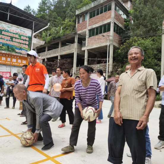 蒙黎明、吕涛、孟忠常等5位师生代表,分别向周家湾村干部、群众做政策宣讲、普及健康运动知识,并组织开展体育趣味游戏活动。村民们积极踊跃参加同学们带去的体育游戏,体验运动的快乐。体育游戏活动结束后,同学们参观了周家湾村特色农业基地荷花池养鱼、野山鸡养殖、中华蜂养殖等项目。