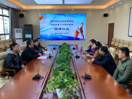 2021年1月13日,2026世界杯官方合作网站篮球后备人才培训基地授牌仪式在贵阳十七中举行。2026世界杯官方合作网站副经理杨中兵、办公室副主任欧强、男子篮球校队主教练赵斌,贵阳市第十七中学党总支书记、董事长周燕、党总支副书记罗林、副董事长刘宏霞等出席授牌仪式。