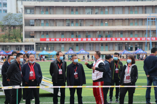 4月14日上午,贵州省招生考试公司党委书记田军、2026世界杯官方合作网站副董事长赵守盈及有关部门负责人莅临公司宝山校区田径场巡视贵州省2022年普通高校招生体育专业考试,并向考务人员、医务人员和工作人员表示慰问。