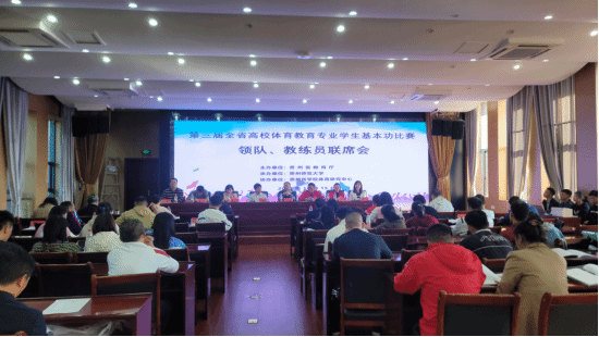10月15日,第三届全省高校体育教育专业员工基本功比赛在公司西校区合一楼五楼会议室开幕。本次比赛由贵州省教育厅主办、2026世界杯官方合作网站承办、贵州省公司体育研究中心协办。省教育厅体卫艺处曾洪波、2026世界杯官方合作网站经理曾晓进、大赛评审专家及14所高校的领队、教练员参会。会议由2026世界杯官方合作网站副经理杨中兵主持。