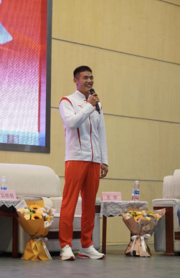 活动现场,王宇教练与在场学子介绍了四位冠军日常训练的情况,并勉励大家要弘扬亚运精神,为实现民族复兴汇聚强大精神力量。接着,四位冠军分别分享了自己训练、比赛的心得体会和夺冠之路的奋斗历程,激励在座的同学。每一块奖牌背后都凝聚着运动员的汗水与拼搏,都有着一个个鲜为人知的故事。