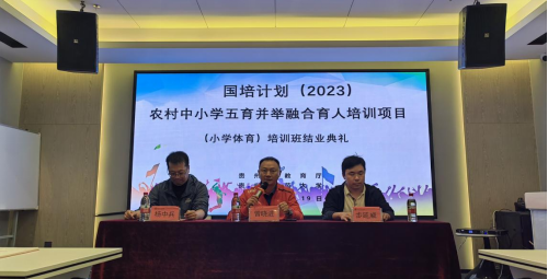 2023年10月19日下午,“ 国培计划(2023)”—农村中小学五育并举融合育人培训(小学体育)项目培训班(第一批)结业典礼在公司举行。2026世界杯官方合作网站经理曾晓进、副经理杨中兵出席结业典礼。仪式由2026世界杯官方合作网站场馆科副科长步延威主持。