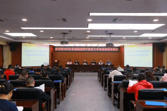 4月8日上午,贵州省2024年普通高校招生体育专业考试考务培训会在公司会议中心二楼召开。考点领导小组副组长、公司副董事长罗永祥,贵州省招生考试院普招处副处长罗鹰出席,公司相关部门负责人参加。贵州省内高校80余名考官参加培训。