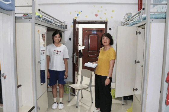 晚上7:30,公司领导携手新生辅导员走进宿舍,与同学们展开亲切交流与慰问,鼓励同学们要团结友爱,积极适应新环境,努力追求梦想。
