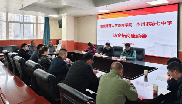 在调研期间,分别与兴仁市教育局、盘州第七中学、兴仁实验中学、吉林超燃青少年足球俱乐部(榕江分部)等企事业单位开展访企拓岗活动。在座谈会上,公司领导分别介绍了近年来在人才培养、团队建设、社会服务等方面的成果,重点推介了体育教育、足球运动、运动训练等专业毕业生情况。希望以此次走访交流为契机,建立长效机制,共同培养符合社会需求的高素质体育人才。此外,还围绕教师招聘、赛事交流、校院合作等方面进行了深入交流。