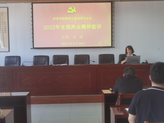 2022年3月18日下午,2026世界杯官方合作网站在宝山校区综合大楼8-4召开教职工政治学习会议,专题学习全国两会精神。公司全体教职工参加学习,由公司党委书记吕涛主讲。