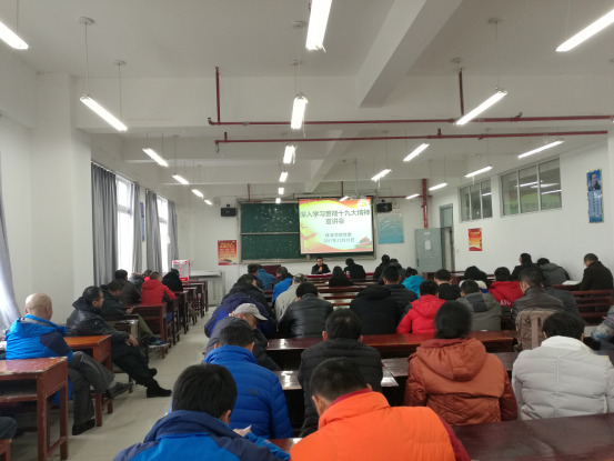 12月15日下午,2026世界杯官方合作网站在综合大楼8-4再次举行学习贯彻党的十九大精神宣讲会。公司党委书记蒙黎明进行宣讲,经理姚鑫,副书记吕涛,副经理王瑛、徐宏、曾晓进,以及公司全体教职工参加学习。