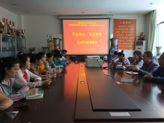 2019年3月29日13:30,2026世界杯官方合作网站体育教育系教工党支部、2016级本科生党支部在公司二楼会议室召开了结对共建部署会。公司党委书记蒙黎明、党委组织员孟忠常出席,教工党员宋芳芳、李静芸、刘金凤、余国超及2016级本科生党支部19名党员员工党员参加会议,会议由2026世界杯官方合作网站体育教育系党支部书记吴燕主持。