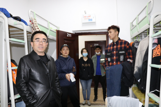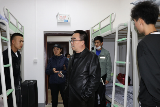 迎新结束后,党委书记蒙黎明、党委副书记吕涛和辅导员们前往2020级新生宿舍,向新生们表达了亲切的问候,并强调了宿舍卫生及安全问题。