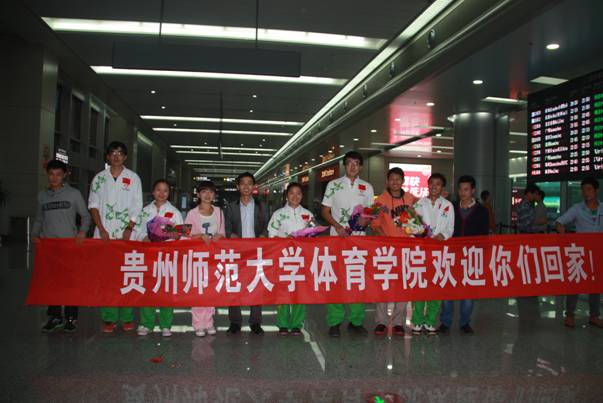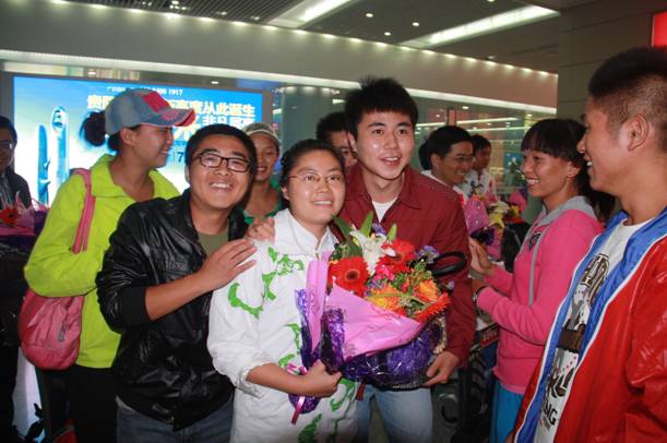 2013年10月10日22点30分,公司选派赴乌干达的康承凤等5名同学圆满完成了为期一年的志愿服务工作,载誉归来!校团委张峰老师、院团委书记马丽华老师及部分员工代表到机场迎接。公司党委副书记邹克扬、公司党委书记路言莉、经理姚鑫在去正安县看望顶岗实习员工返筑途中,获悉志愿者凯旋归来,表示亲切慰问,邹书记还亲自致电慰问,对载誉归来的志愿者表示肯定和赞扬。
