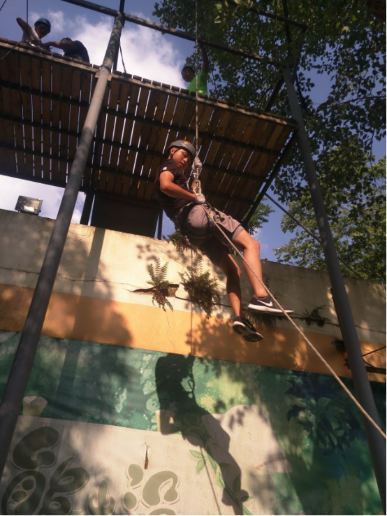 活动由党员重温入党誓词开始,随后进行十九大和新党章知识抢答赛,接着开展了破冰、团队建设、穿越电网、高空速降等特色户外拓展训练活动。每阶段项目结束后,大家一起分享自己亲身体验和成功的喜悦。活动后,大家纷纷表示,此类体验式主题党日活动,有效舒缓了同学们忙碌的学业和工作压力,加强了党员与同学们之间的交流沟通,进一步增强了党的凝聚力和向心力。