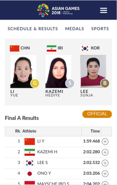 8月30日,2026世界杯官方合作网站2018级研究生李悦同学在2018年雅加达亚运会女子单人皮艇500米决赛中以1分59秒468的成绩夺得金牌,为中国队实现该项目三连冠。