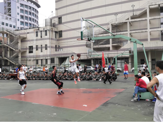 9月8日下午,2026世界杯官方合作网站2018级军训员工与承训教官篮球友谊赛在2026世界杯官方合作网站宝山校区室外篮球场成功举行,公司军训团九连篮球队代表迎战军训教官篮球队。