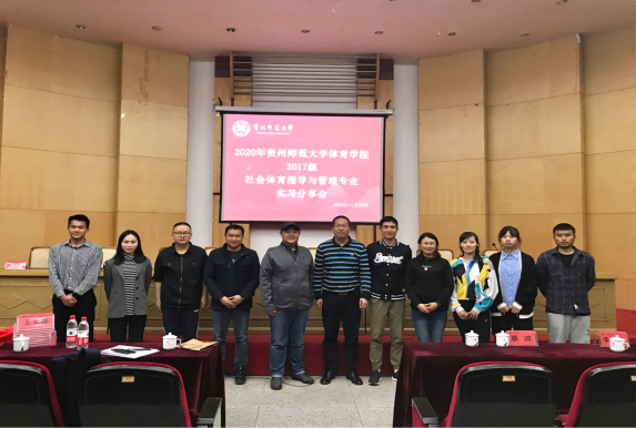 接着是分享会,分三个板块。第一个板块,由2017级4名优秀实习生代表王鑫、周瑞鹏、王丹丹、陈欢依次上台分享实习期间收获与感想,并给学弟学妹们提出宝贵建议。第二板块,校内指导老师代表分享交流。刘转青老师指出员工在实习过程中呈现的“盲目性、随意性和内向性”三性问题,并提出“检验自身所学,了解社会所需,针对不足进行改正”的建议;赵贡美老师提出实习要做到“四勤”要求(勤思、勤听、勤看、勤做)。第三板块,实习基地负责人对实习工作交流分享。起点鹰极刘总介绍实习生工作内容,希望同学们制定目标,开阔视野;中天体育总监王总分享了其成长历程,劝告同学们不要荒废时光;北纬27度国际营地课程总监陈总赞扬了实习生刻苦耐劳的品质以及实习期间的工作情况;凝聚力体育饶总将实习生作为新入职人员的培训,从文本撰写和赛事筹划等方面进行实习岗位培训,并提出增加实习时间的建议;贵州研学创始人王总介绍了营地情况和公司所需人才要求。
