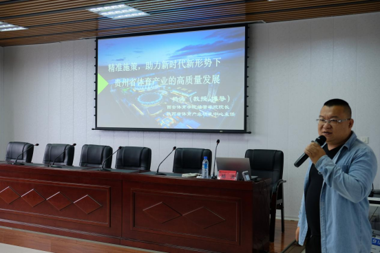 杨涛教授从个人认知、国家文件与时事热点三方面引入“体育产业”,指出了“两山理论”、“一带一路”的生态关注,分析了“后疫情时代”国际体坛的趋势变化,立足贵州,丰富地向公司师生作专题学术分享。