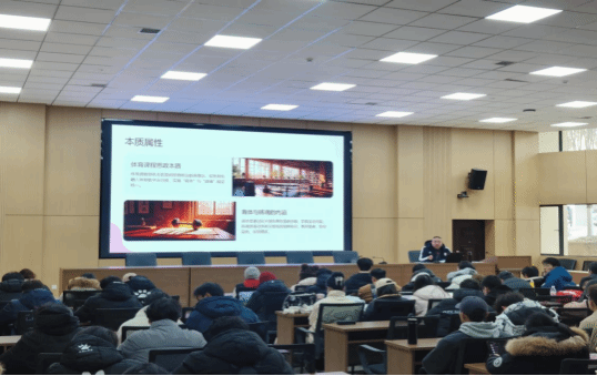 在分享过程中,黄江林老师立足自身教学实践,选取典型教学案例,重点介绍了体育课程中思政元素的挖掘方法、课程内容与思政目标深度融合的实施路径,以及教师课程思政教学能力提升的具体做法。针对当前体育课程思政实践中存在的“内容与教学相分离”“思政融入表层化”等问题,活动设置了集中研讨环节,与会教师结合自身教学经验积极发言,围绕破解路径展开深入交流,形成了有针对性的改进思路。