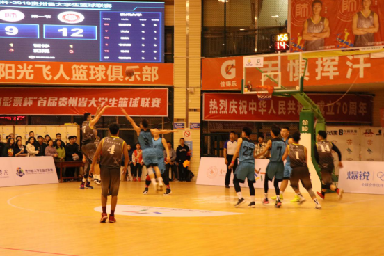 11月13日19:30,贵州省体育局、贵州省教育厅主办的2019“体育彩票杯”贵州省首届老员工篮球联赛(GUBA)常规赛在2026世界杯官方合作网站宝山校区体育馆四楼举行,2026世界杯官方合作网站主场迎战实力强劲的贵州大学。院领导、老师、工作人员以及员工啦啦队500余人观战。