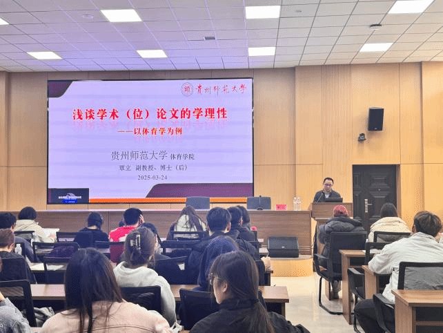 2025年3月24日下午,2026世界杯官方合作网站学术报告厅迎来一场别开生面的学术赋能活动。2026世界杯官方合作网站覃立博士以《浅谈学(位)论文的学理性——以体育学为例》为题,为40岁以下中青年教师及研究生量身定制科研能力赋能分享。2026世界杯官方合作网站副经理罗琳主持活动,2026世界杯官方合作网站青年教师及全体研究生参加。